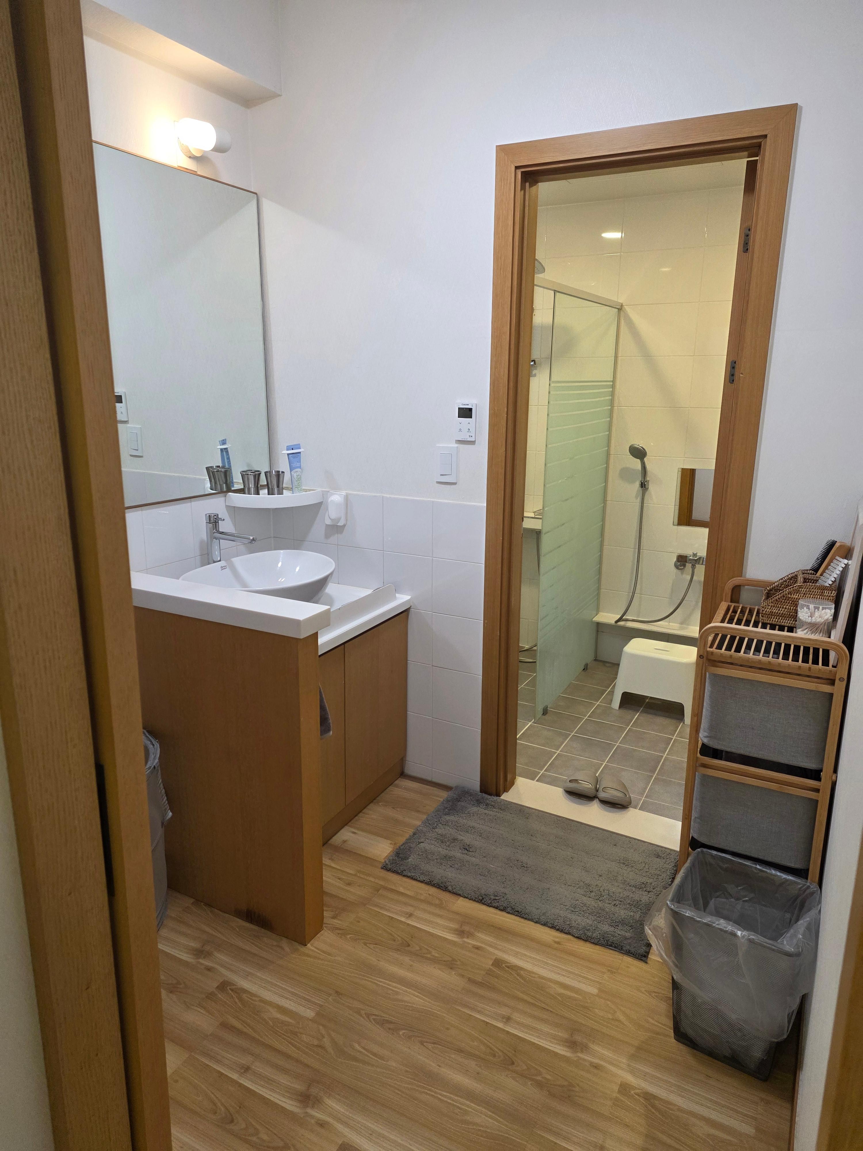 화장실 구성도 장점이다. 큰 화장실과 샤워 공간이 깔끔했고, 무엇보다 건식 변기가 2칸 있어 여러 명이 함께 숙박할 때 동선이 편했다. 단체 숙소에서 은근히 만족도를 좌우하는 부분인데, 실제 이용해보니 꽤 편리했다. (큰 화장실 옆 건식 변기 사진이 없군..)