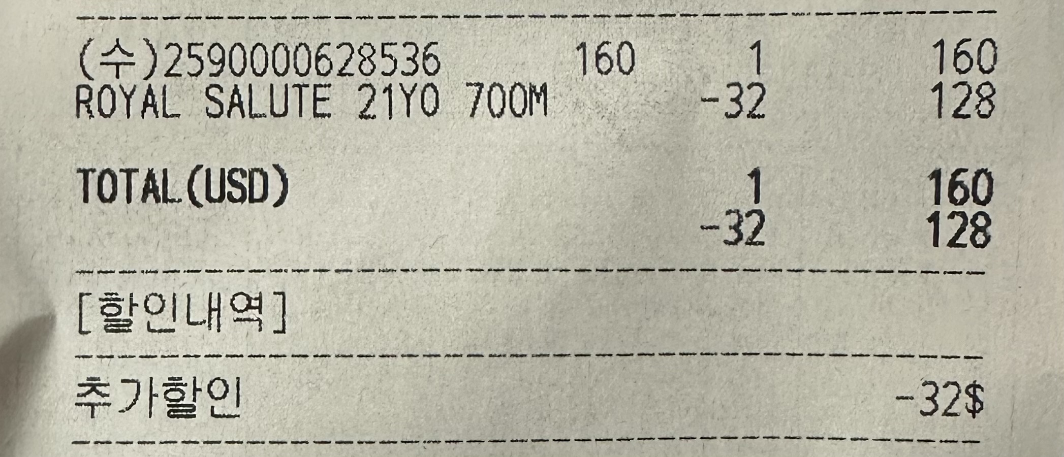 그랜드 면세점 주류 코너를 잘 보면, 특별 할인 행사를 진행하는 주류가 있다.