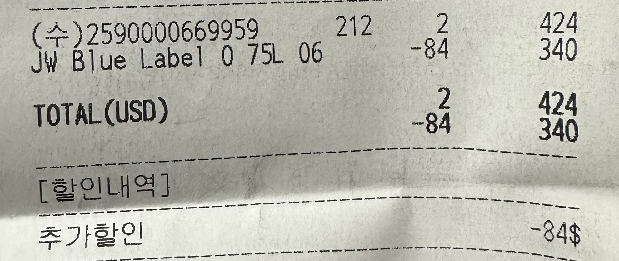 이번엔 운이 좋게도 조니워커블루라밸을 20% 할인 판매하고 있었다.