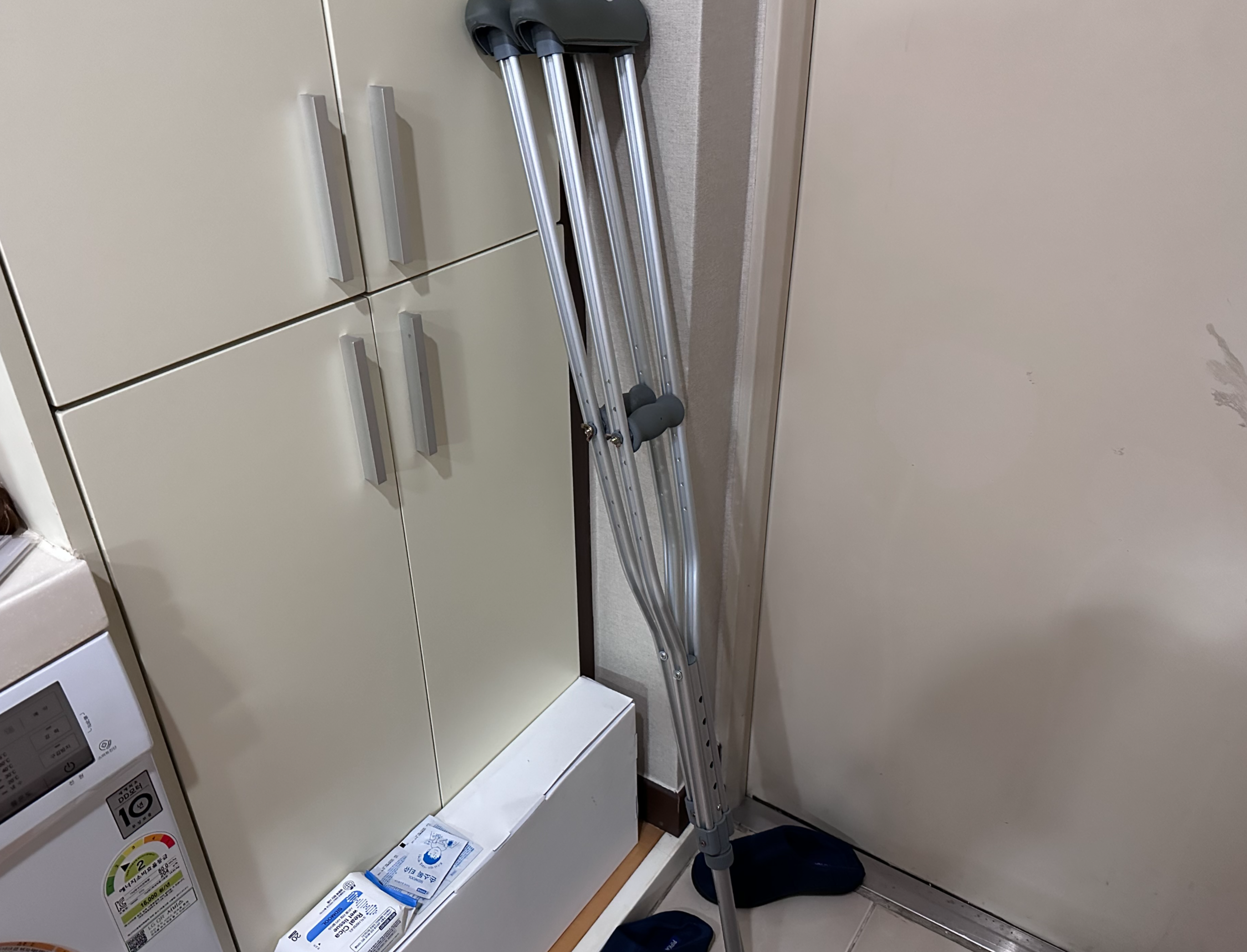 집에 들어가는 길엔 걷지를 못할 정도였는데, 경비 아저씨가 보더니 챙겨두었던 목발을 가져다 주셨다.