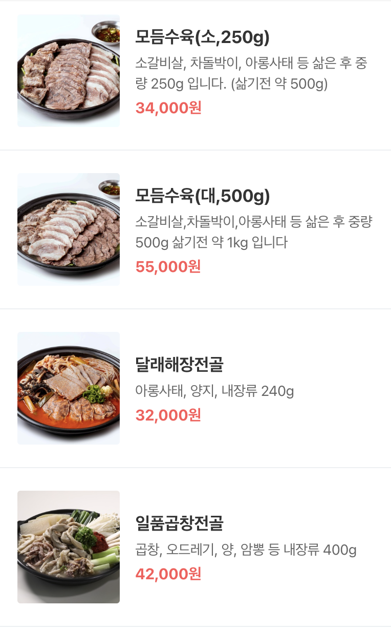 우리가 시킨 메뉴, 갈비 수육(250g) (₩32,000).