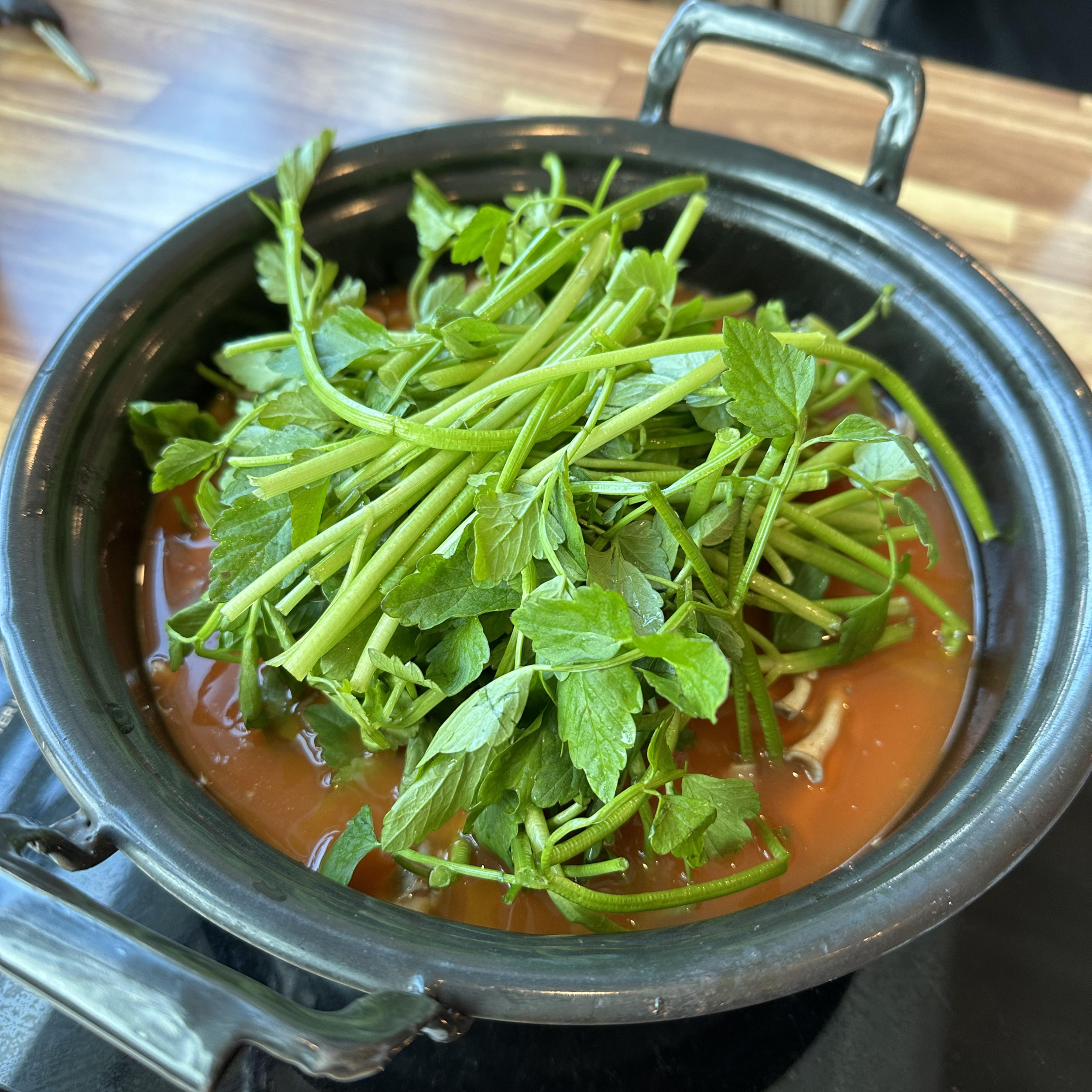 미나리와 느타리 버섯은 과하지 않게 들어가 있다. (사실 좀 더 많았으면 함..)