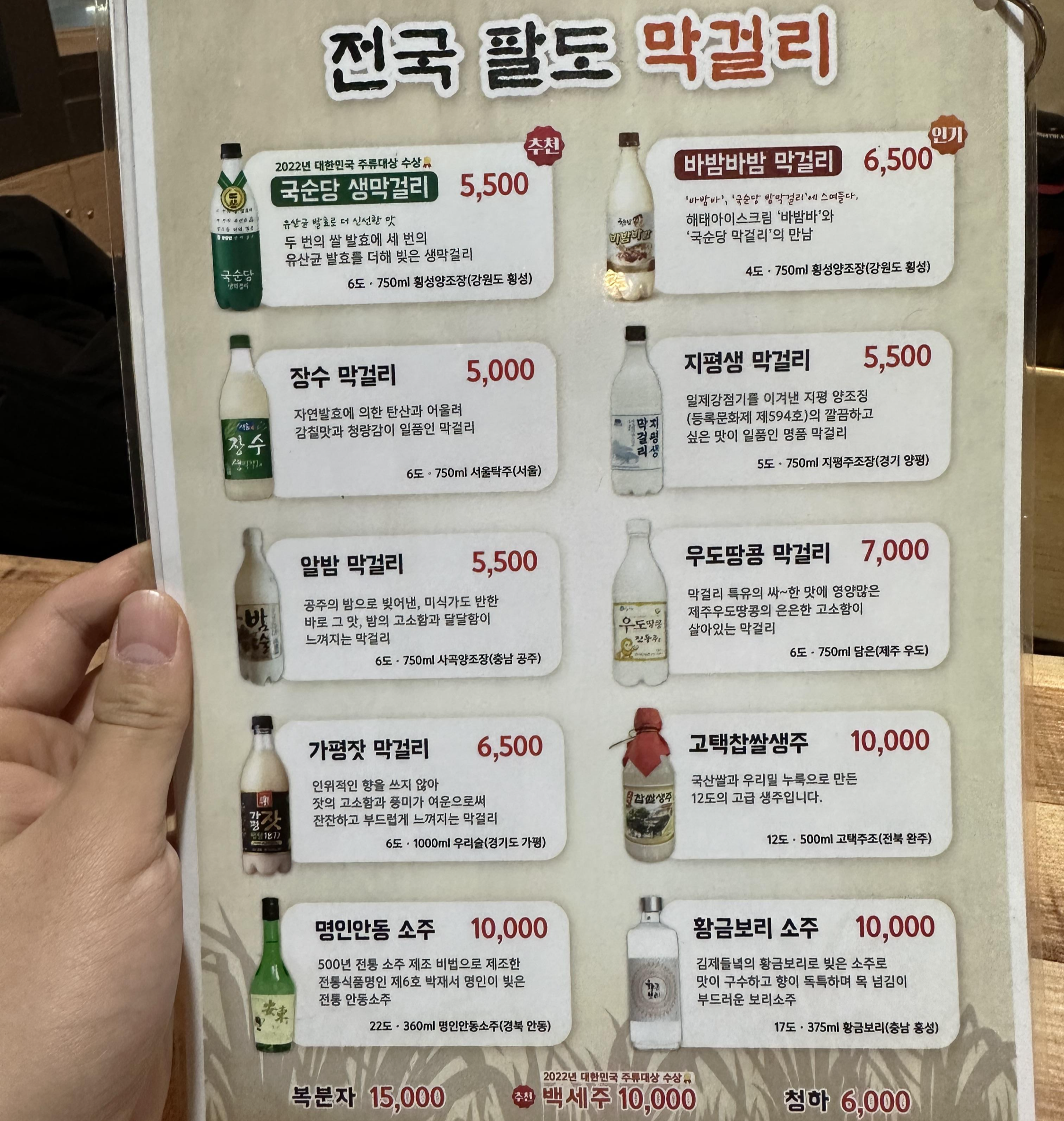 당연히 다양한 종류의 전국 막걸리가 준비되어 있으며,
