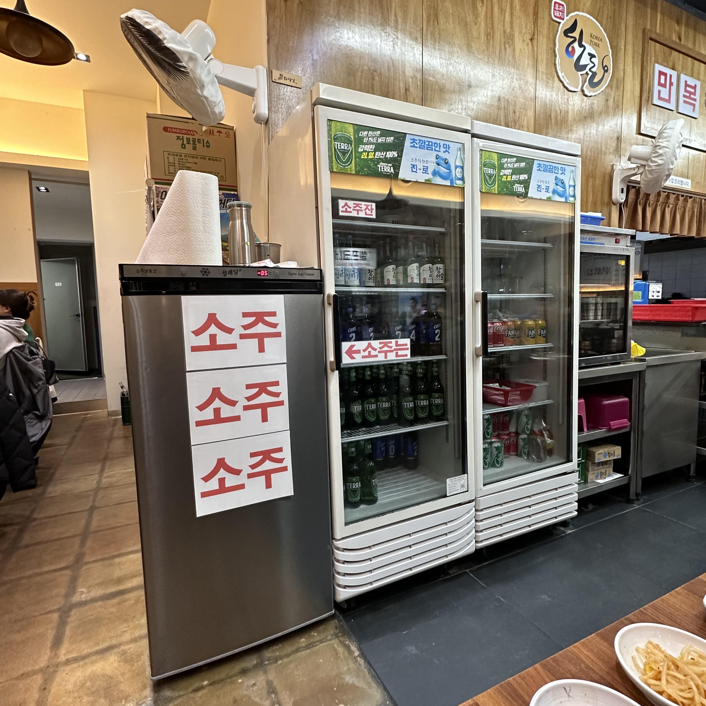 소주는 업소용 쇼케이스가 아닌 소주냉동고에 들어있어 아주 시원하니 좋다.