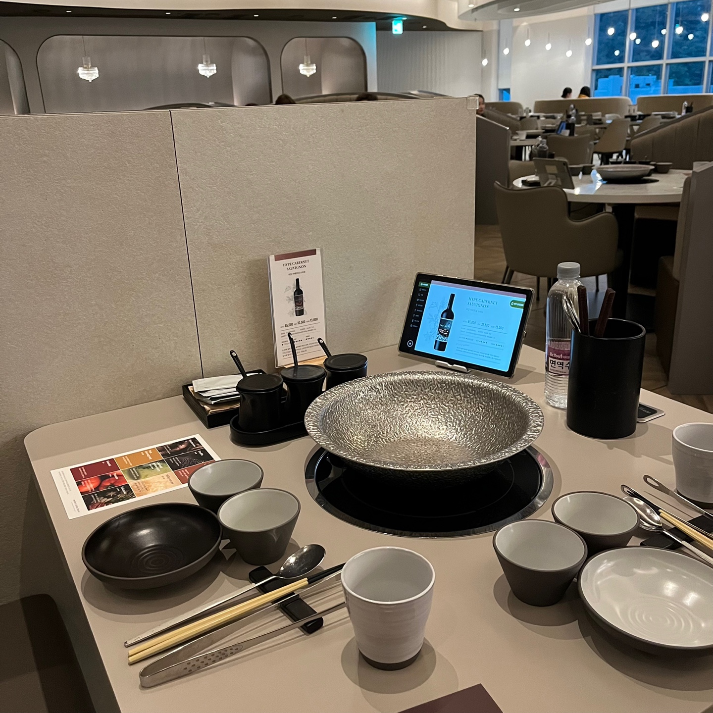 기본적인 테이블 세팅 또한 고급스럽고 깔끔했다. 자리를 안내 받아 앉으면 매장직원의 기본적인 설명 후 함께 좌측 사진 뒤쪽에 보이는 태블릿을 이용하여 주문하면 된다.