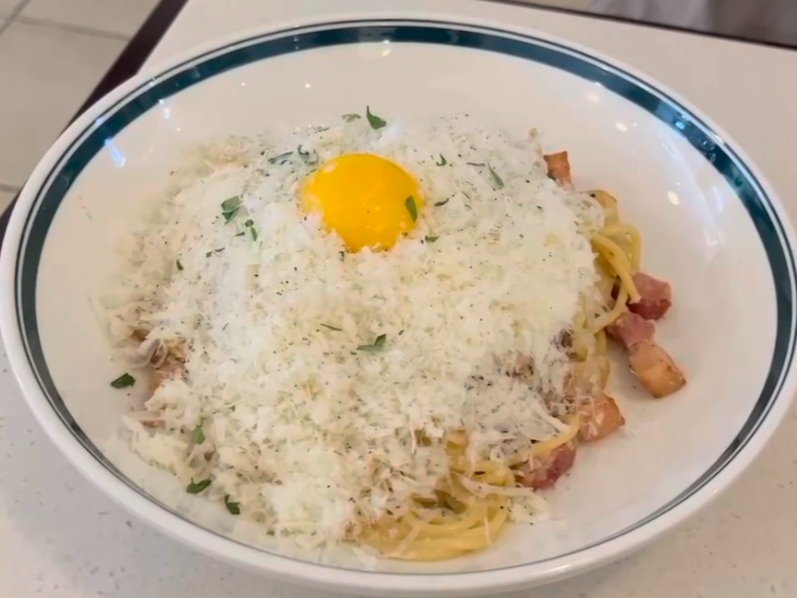 계란 노른자는 신선도에 따라 자칫하면 비린 맛을 낼 수 있는데, 전혀 비리지 않았으며, 치즈의 꾸덕함과 적당히 익은 베이컨이 조화를 잘 이루어 냈다.