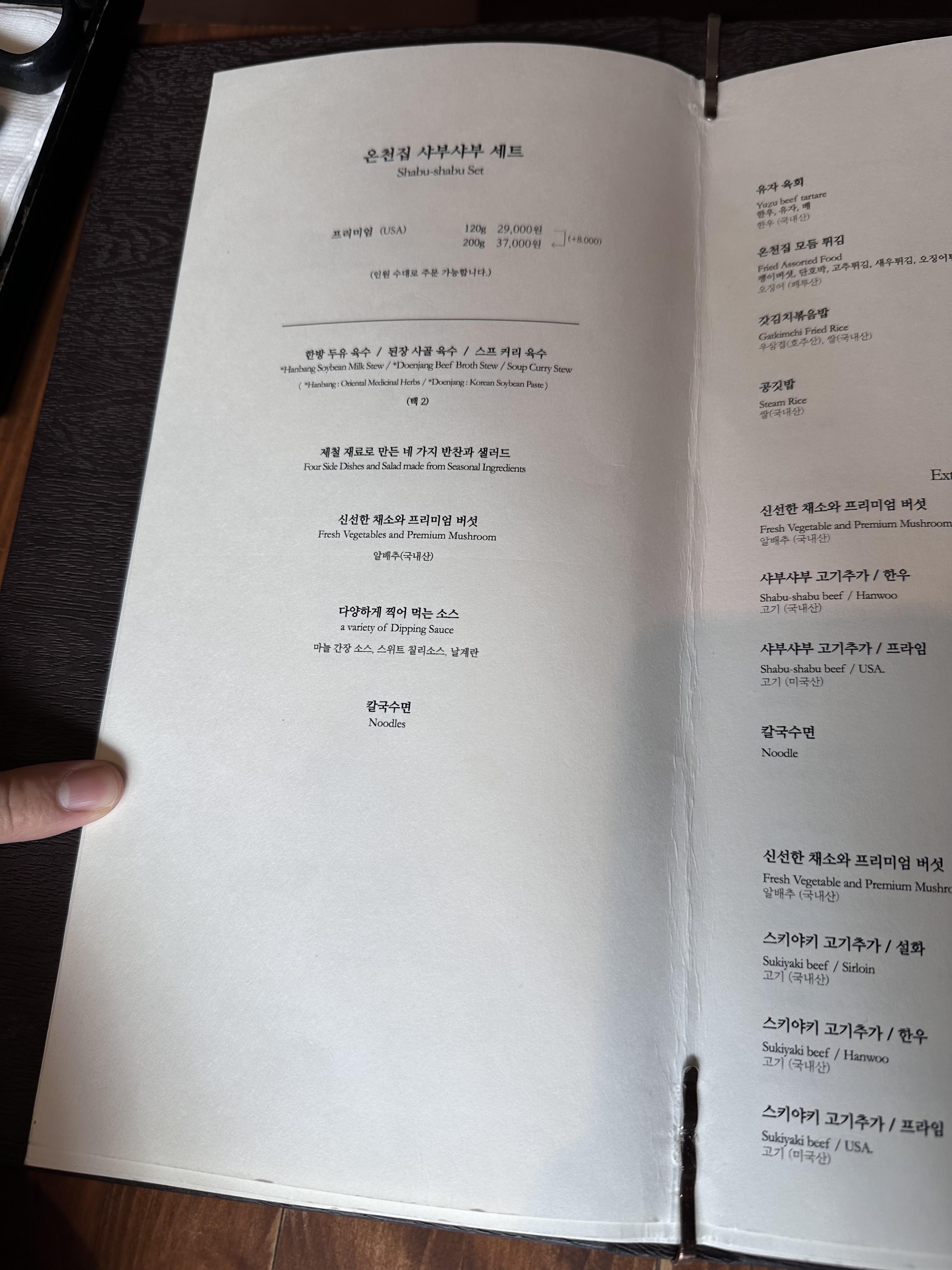 일반적으로 유명한 온천집(익선지점이 가장 유명하다)은 샤부샤부를 판매한다.