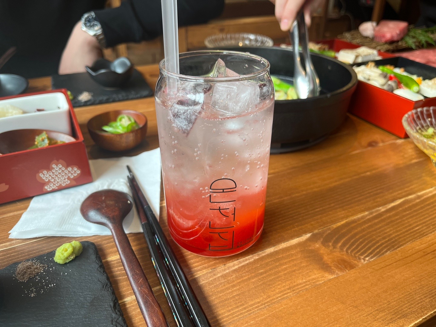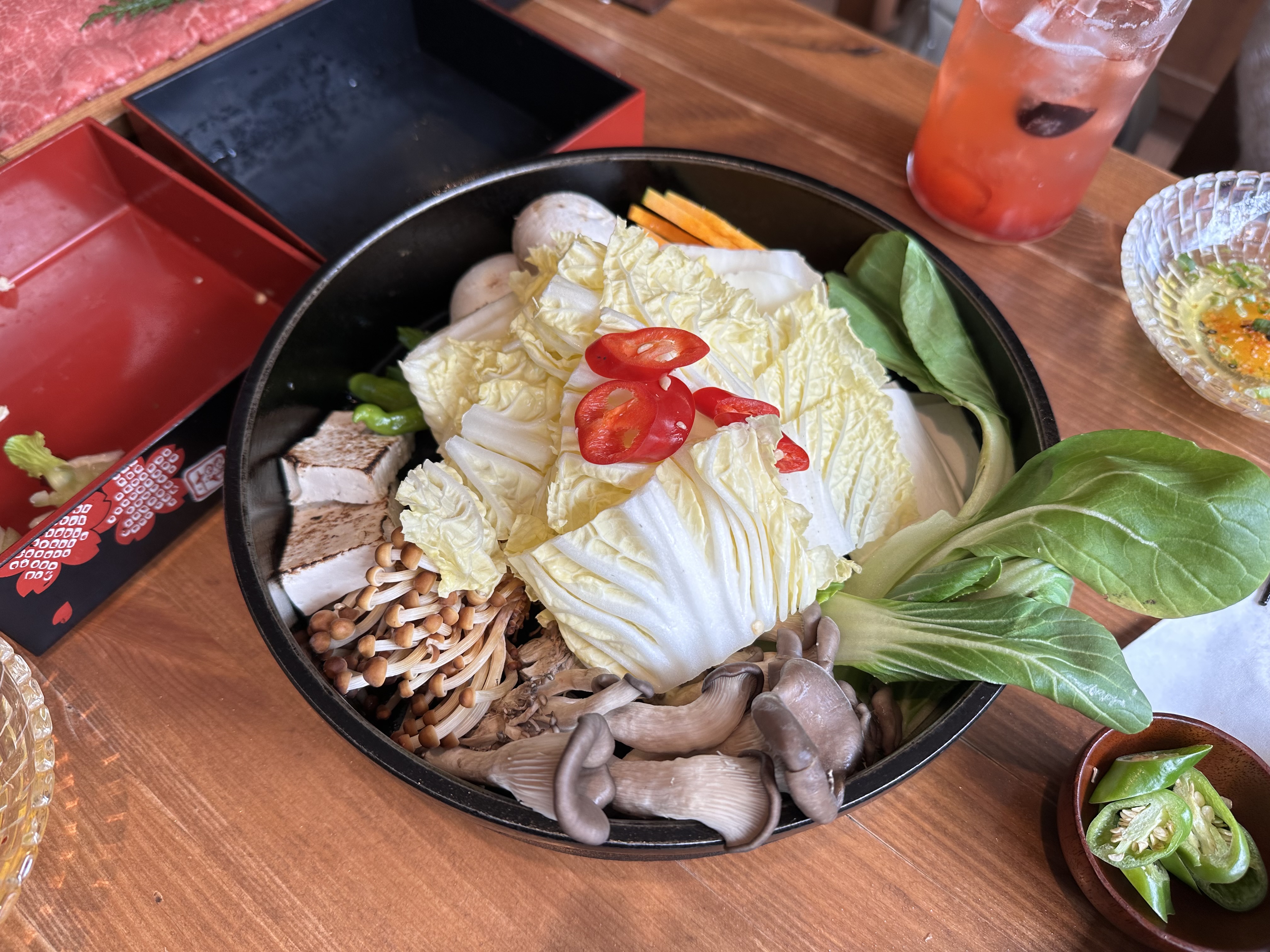 스키야키의 식전 세팅.