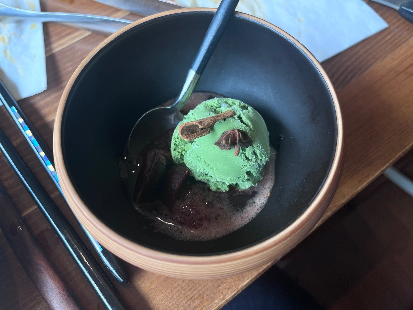 디저트는 이전 메뉴들에 비해 조금 아쉬웠는데, 우선 아이스크림이 말차 맛 밖에 없다.