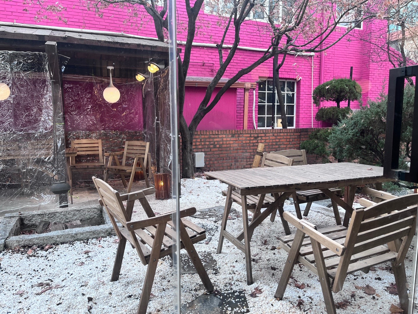 길의 끝에는 웨이팅 고객을 위한 야외 대기석이 마련되어 있다.