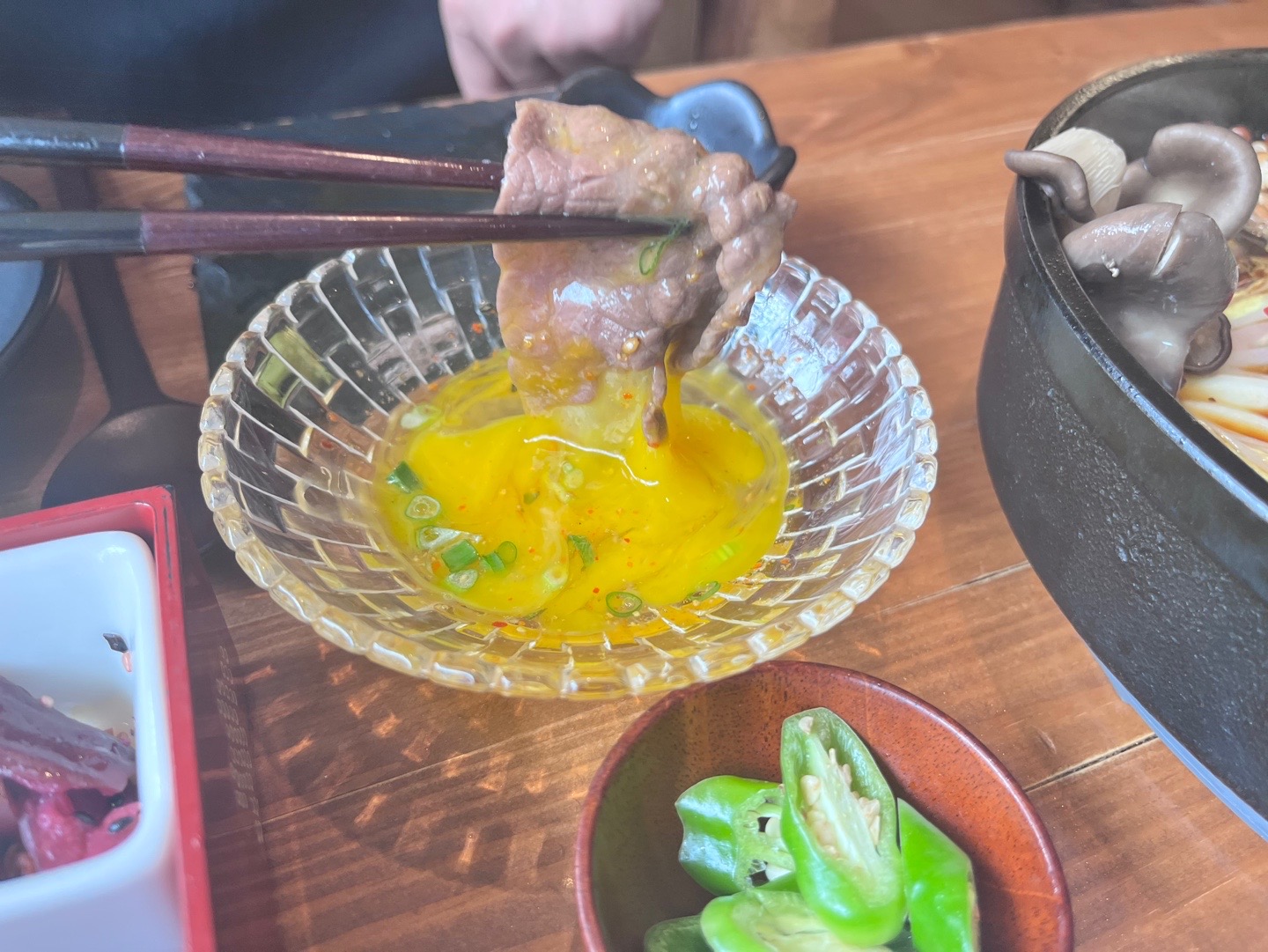 스키야키는 달고 짠 자극적인 맛으로 밍밍한 계란장이 준비되는 이유를 알았다.