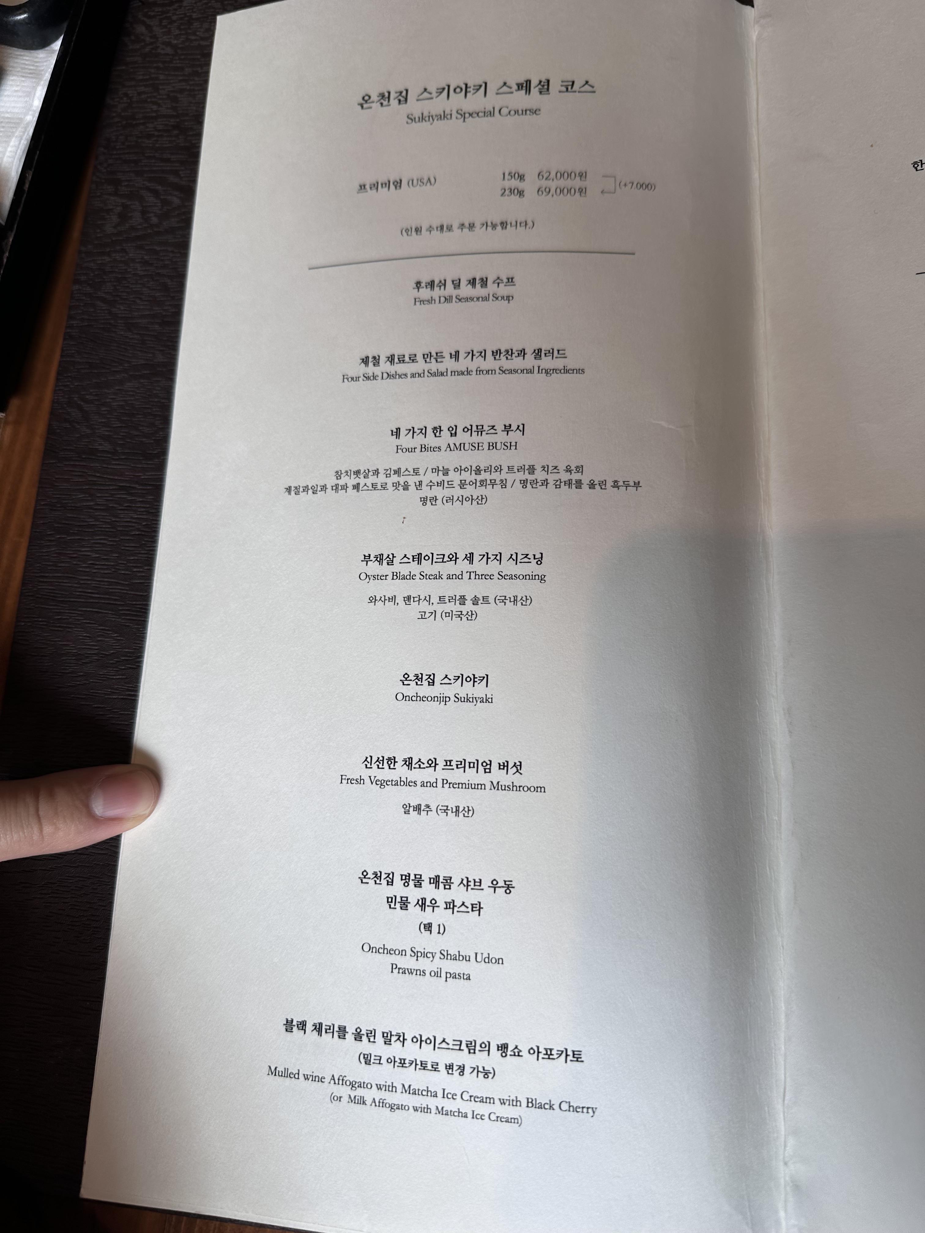 일반적으로 유명한 온천집(익선지점이 가장 유명하다)은 샤부샤부를 판매한다.