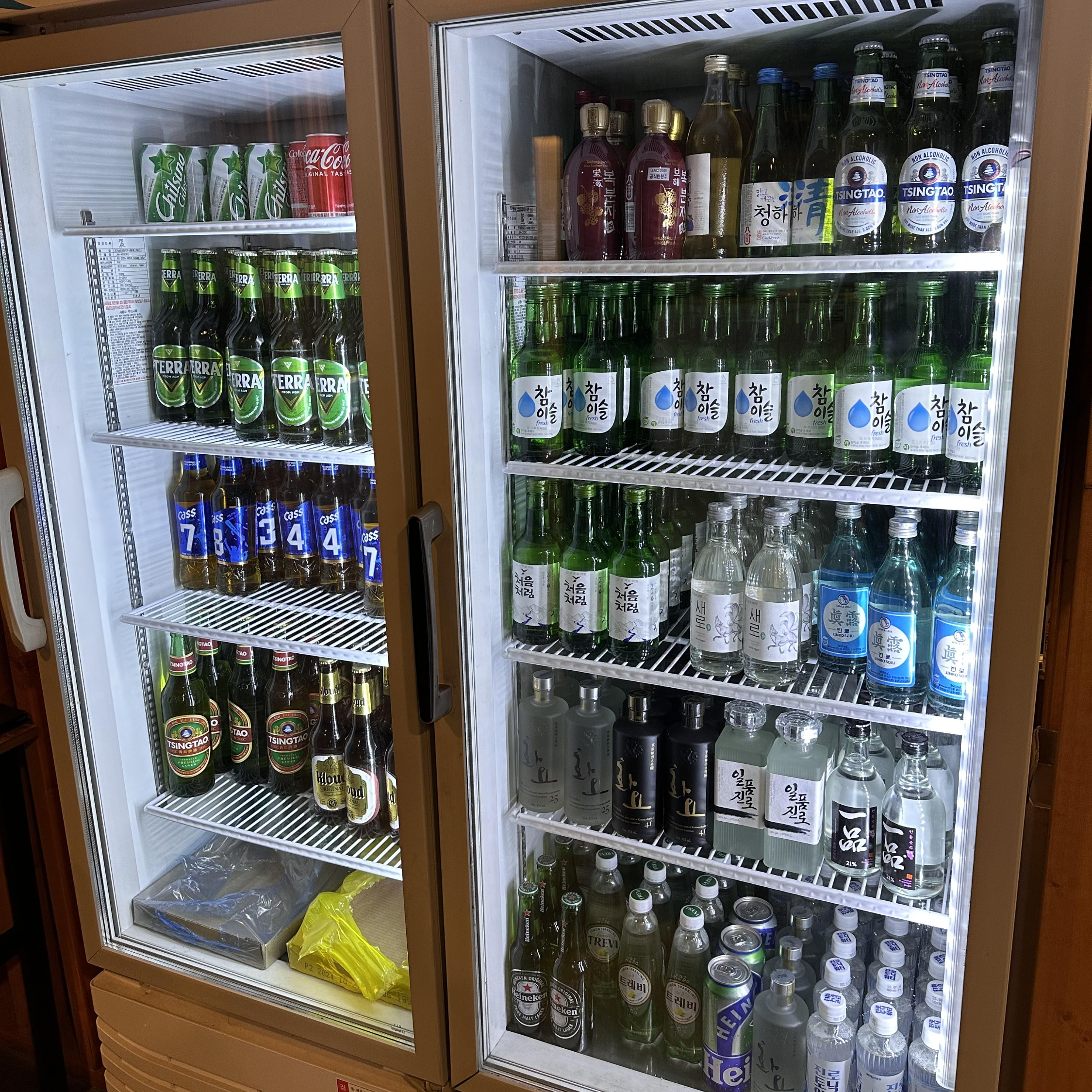 화요, 일품진로, 보해 복분자 등 다양한 종류의 주류가 준비되어 있다.