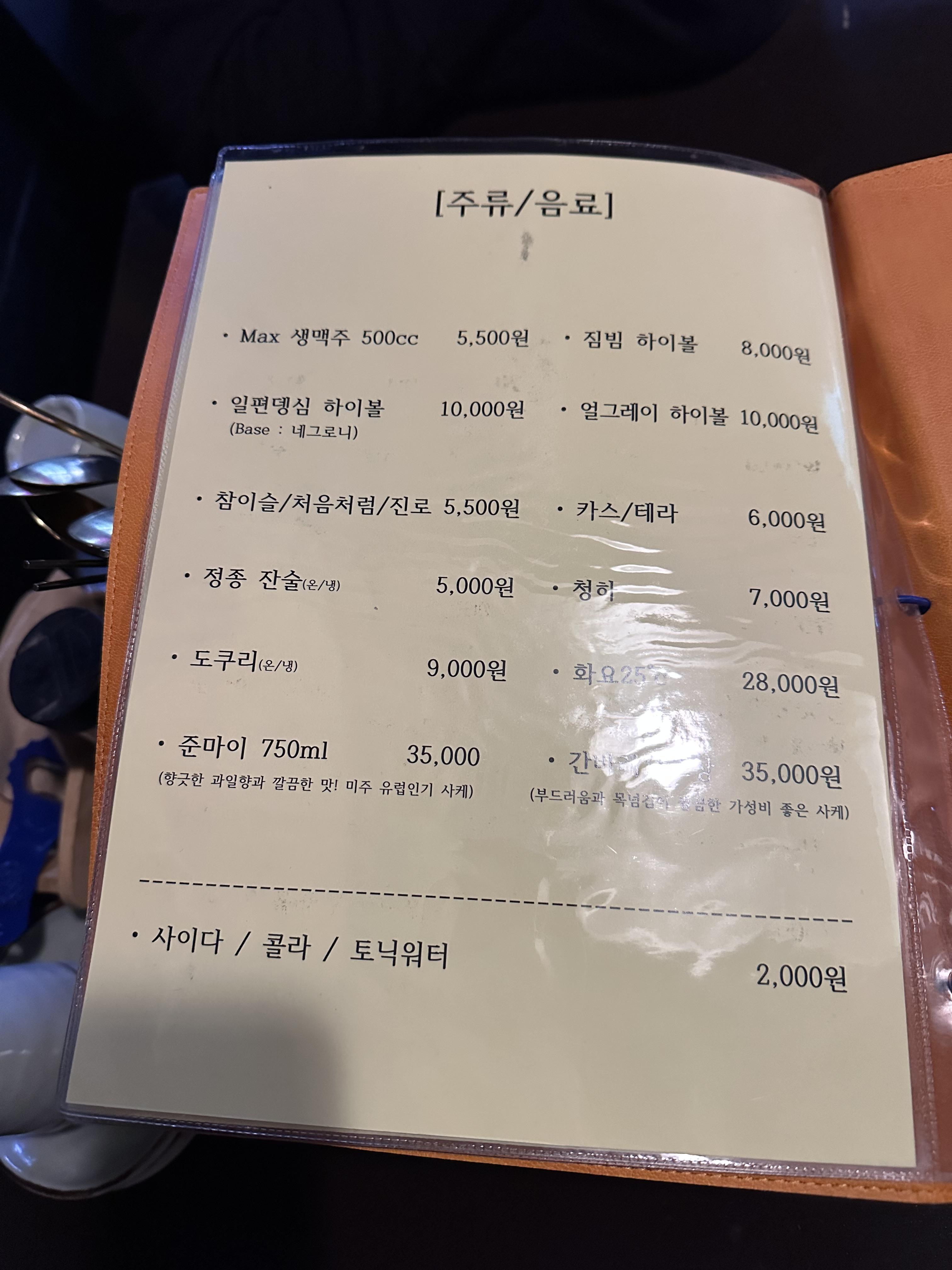 입구부터 느껴진 고급스러움은 베이지톤의 가죽스러운 메뉴판에서도 느껴진다.