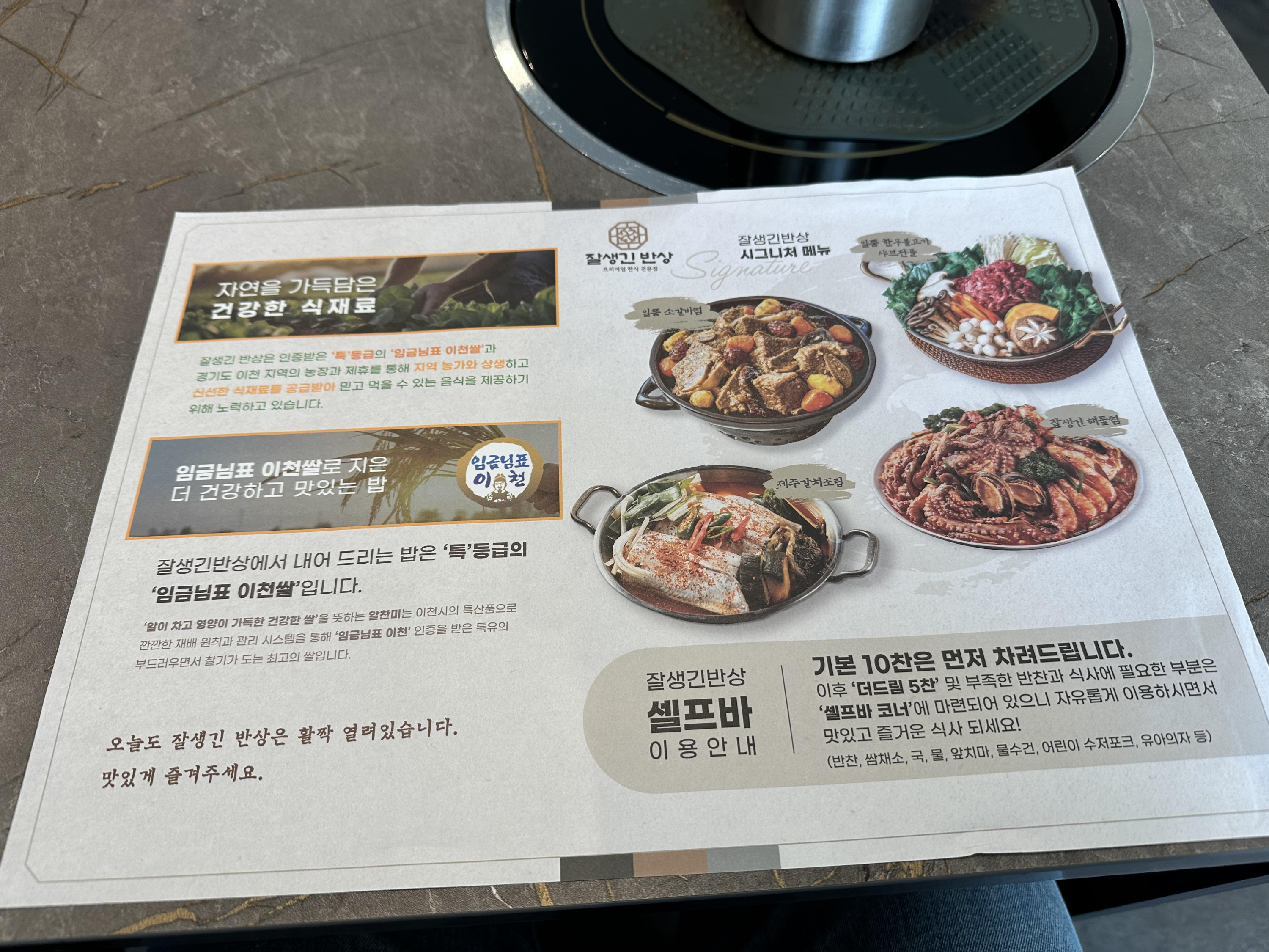 자리에 마련된 테이블 매트? 페이퍼?에 쓸만한 정보들이 적혀있다.