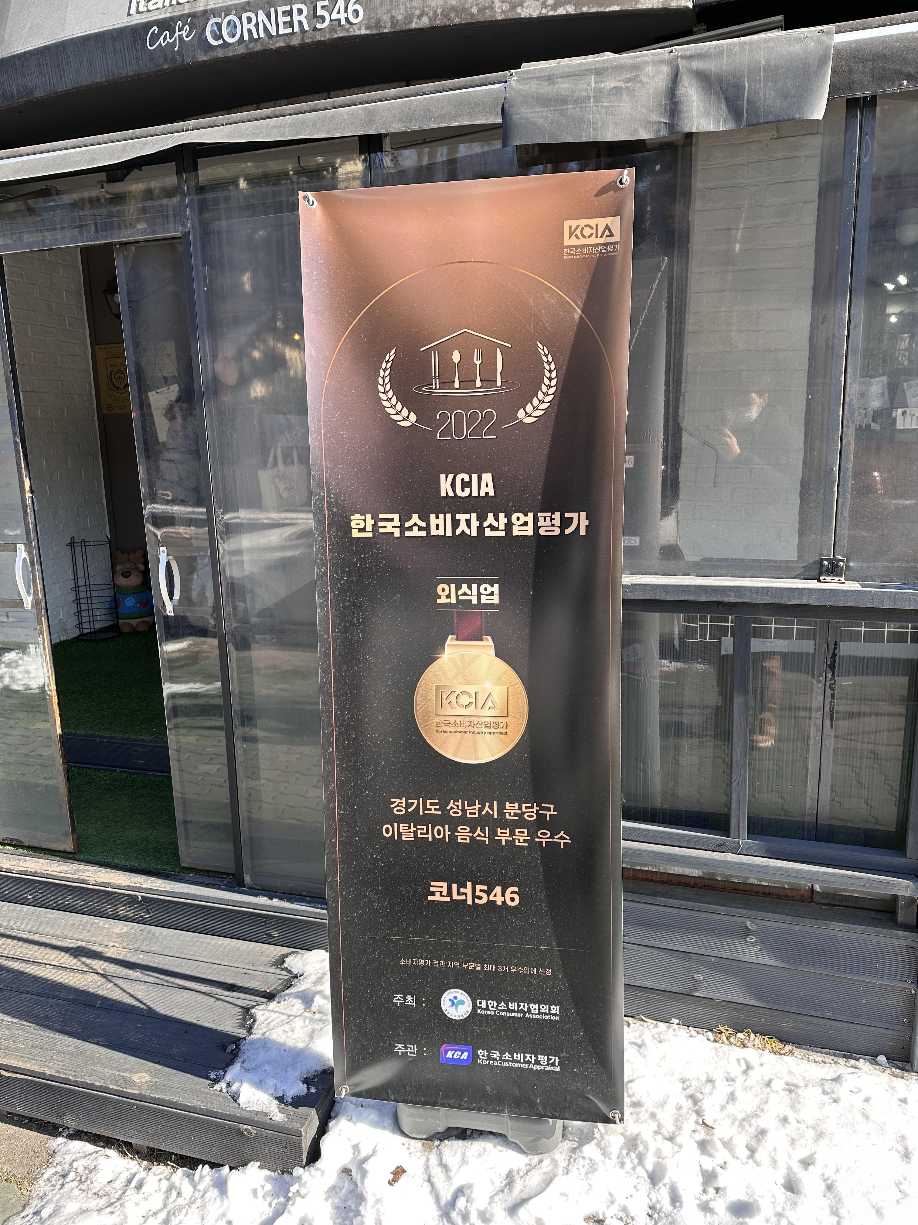 입구엔 위풍당당한 KCIA 한국 소비자 산업평가 외식업 금메달의 수상 이력을 세워두었다.