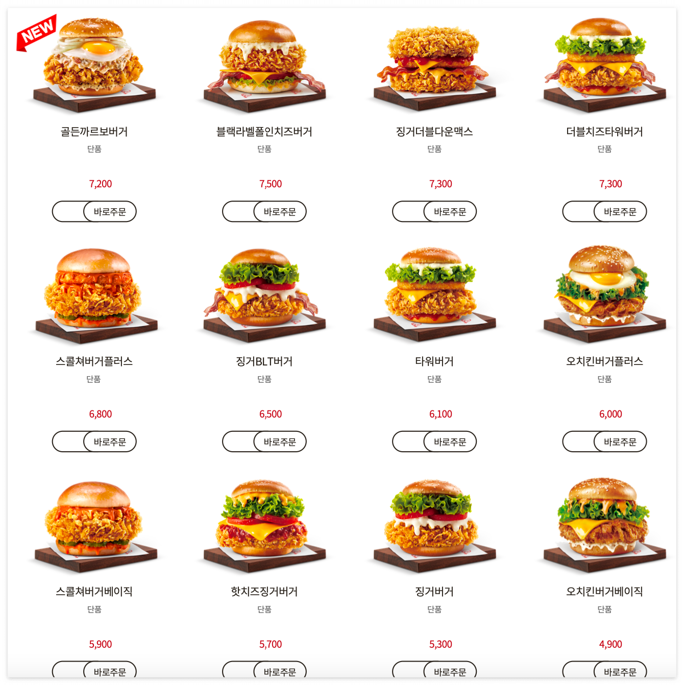 골든까르보버거의 단품 가격은 ₩7,200 로